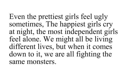I believe that we all in some way or another, have struggled with ourselves mentally. Some people might try to deny it, but they know it’s true. When I say struggled mentally, I don’t necessarily mean a diagnosable mental struggle, I mean the type of mental struggle we all have within our daily lives. A common one I hear so frequently is “overthinking.” We let ourselves get into these over-obsessive mind marathons over something that’s causing us mental turmoil, whether it be about a guy, a girl, a family member, a family issue, a test, a friendship, a big life decision. We think it over and over and freak ourselves out about what could happen or who could get hurt, or how we could get hurt and we play countless different scenarios in our heads, thinking and thinking and thinking...and that, is what I call a mental struggle. And there’s plenty more out there. Body dysmorphia, stress, anxiety, sadness, depression, isolation, hallucinations, sleep deprivation, insomnia, and more. As a college student, I’m almost positive we have all dealt with a lot of these things during our college career, and maybe some more than others. My whole point being, mental illness and mental struggle might not be the same thing, but they are both mental issues, and we all have them. It is not something to be ashamed of or to feel like we have to hide. I for one, have had an extremely hard time opening up about my own mental illness. For some reason I’ve gotten it into my head that no one should know and that if people did know, I would be judged and looked at as pathetic or week. I think the real reason I have such a hard time telling certain people, is because society has convinced me that I’m not supposed to. Society has convinced me that it is supposed to be kept a secret and we aren’t supposed to reach out for help, that the world is too fragile to understand what goes through our minds and that we should be able to just handle it ourselves. Well I say...screw that. I’m done sneaking around and hiding things around people and pretending that I’m fine and that nothing has happened to me. However, that is so much easier said than done. I’m working on it.